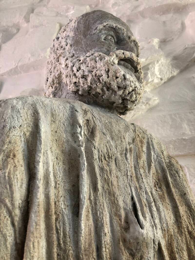 Materials: Wire Frame, Paper Towels soaked in Concrete Tile Adhesive, Outer Garment is a recycled Tunic soaked in Cement Tile Adhesive.